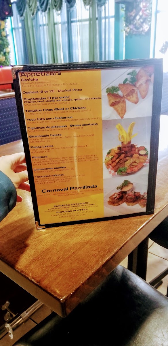 Steak, sweet plantain, Pork Chunck, eggs, Salad, Rice and Beans.